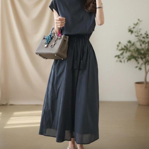 [NS홈쇼핑][샵앤] 여성 셔링 라운드넥 허리스트링 반팔 롱 원피스 JR-WDR-5169..