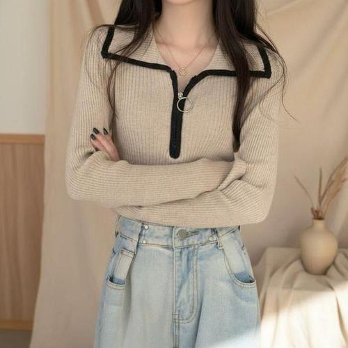 [셀러허브_여성트랜드패션]여자 데일리 오피스룩 슬림핏 골지 반집업 니트
