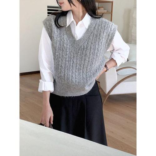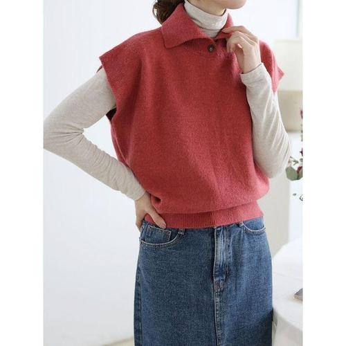 [헤레이스]단추 카라넥 니트조끼_YMSH25FW199