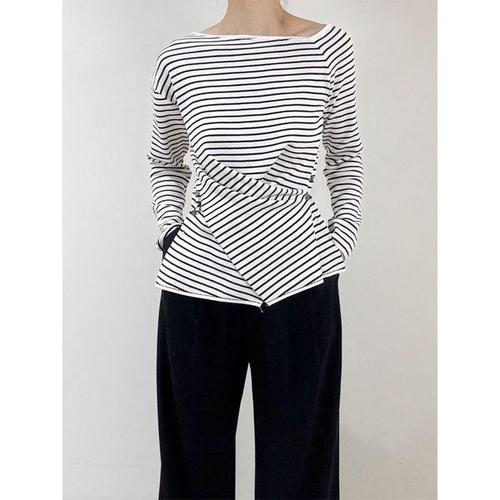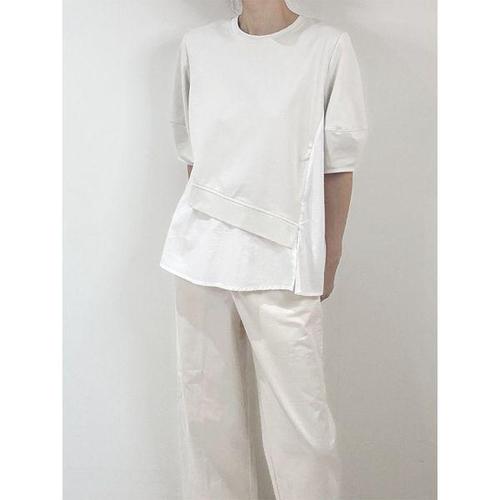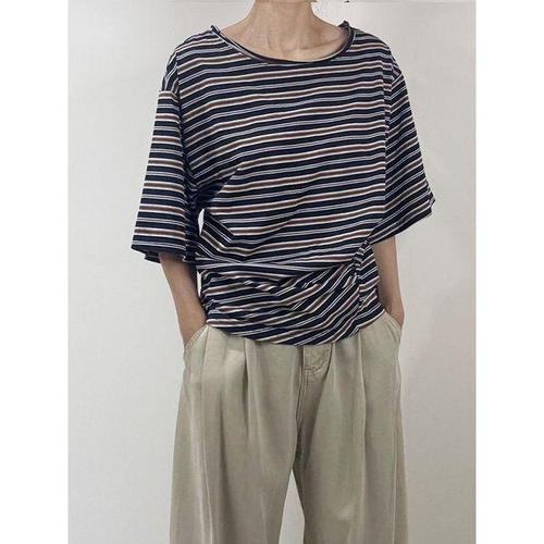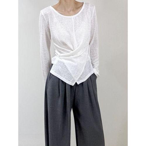 [헤레이스]듀이 버튼 셔링 티셔츠_YMSH25FW040