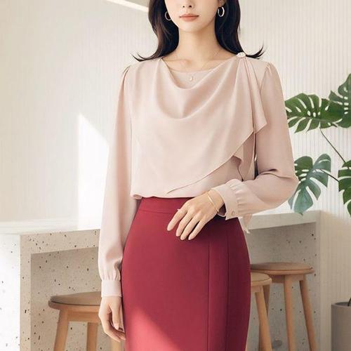 [헤레이스]핀턱 카라 블라우스_YMSH25FW131