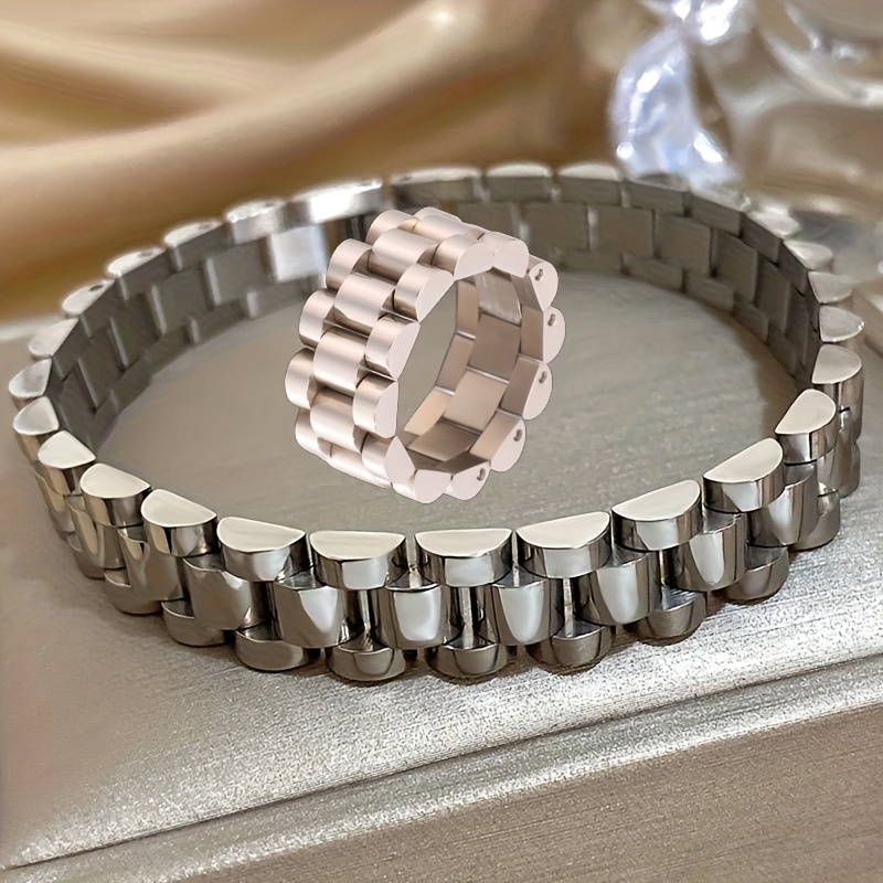 TEMU 2개 세트 패셔너블한 스테인리스 스틸 팔찌 & 반지 조합, 다양한 컬러, 방수 및 내구성 강화, 일상과 여행에 최적의 선택