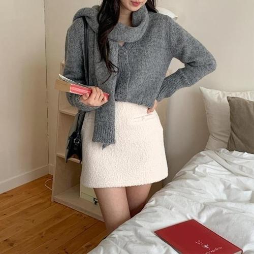 [옷자락]여자 헤어리 카디건 FW 미니멀리즘 울 목도리 V넥 세트