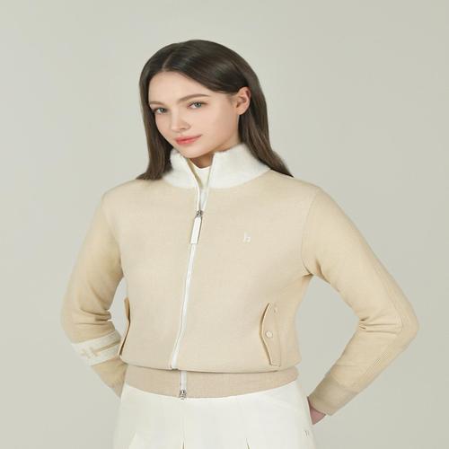 헤지스 골프 여성 베이지 여성 울혼방 니트 방풍 집업 (HWSW5D719I1)