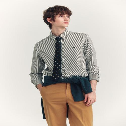 헤지스 남성 그린 스트라이프 면혼방 긴팔캐주얼셔츠 (WHSH5A223E2)