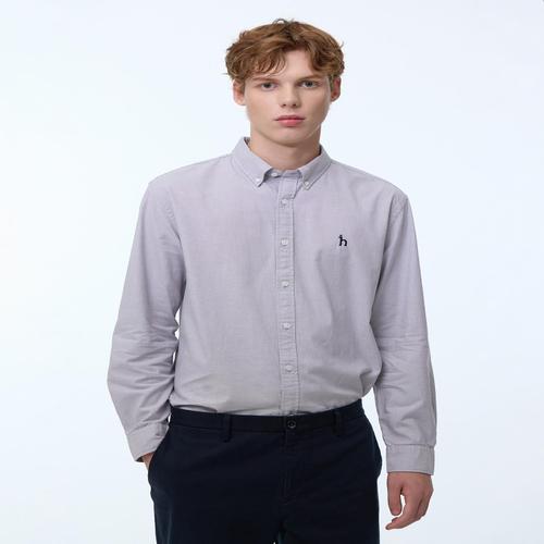 헤지스 남성 [스테디셀러] 그레이 버튼다운 면 긴팔캐주얼셔츠 (WHSH4C103G1)
