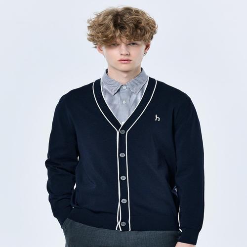 헤지스 25FW 남성 솔리드 배색 브이넥 가디건 HZSW5D202I2
