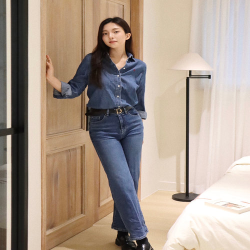 헤지스 여성 [데님][세미와이드] 블루 에센셜 데님 팬츠 (HSPA4C780B2)