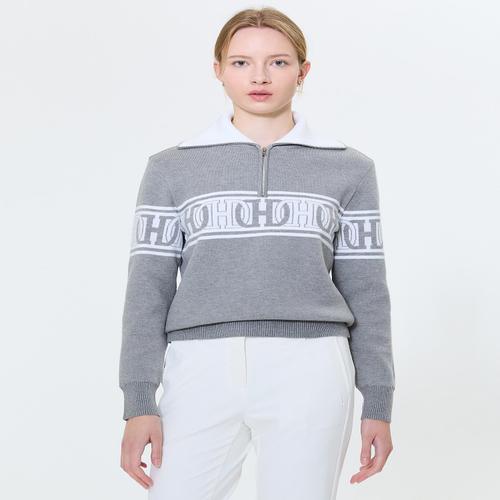 헤지스 골프 여성 [스테디셀러]로고 체인 하프집 니트 (GRAY) (WWSW4D751G2)