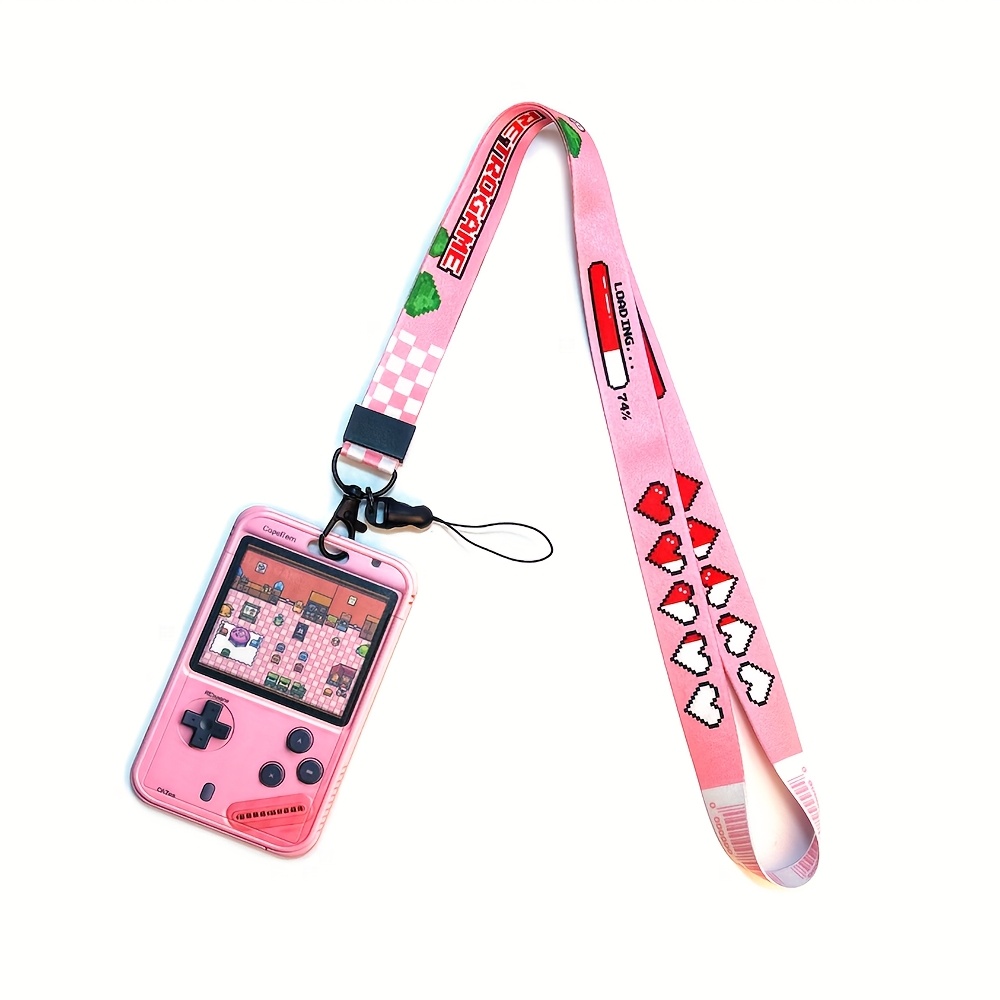 TEMU 핑크 레트로 게임보이 디자인 조절 가능한 목걸이 스트랩 ID 배지 홀더 - 의사, 학생, 출퇴근자용 2개 신용카드 슬롯, 게이밍 버튼 & 하트 패턴 귀여운 ID 배지 홀더