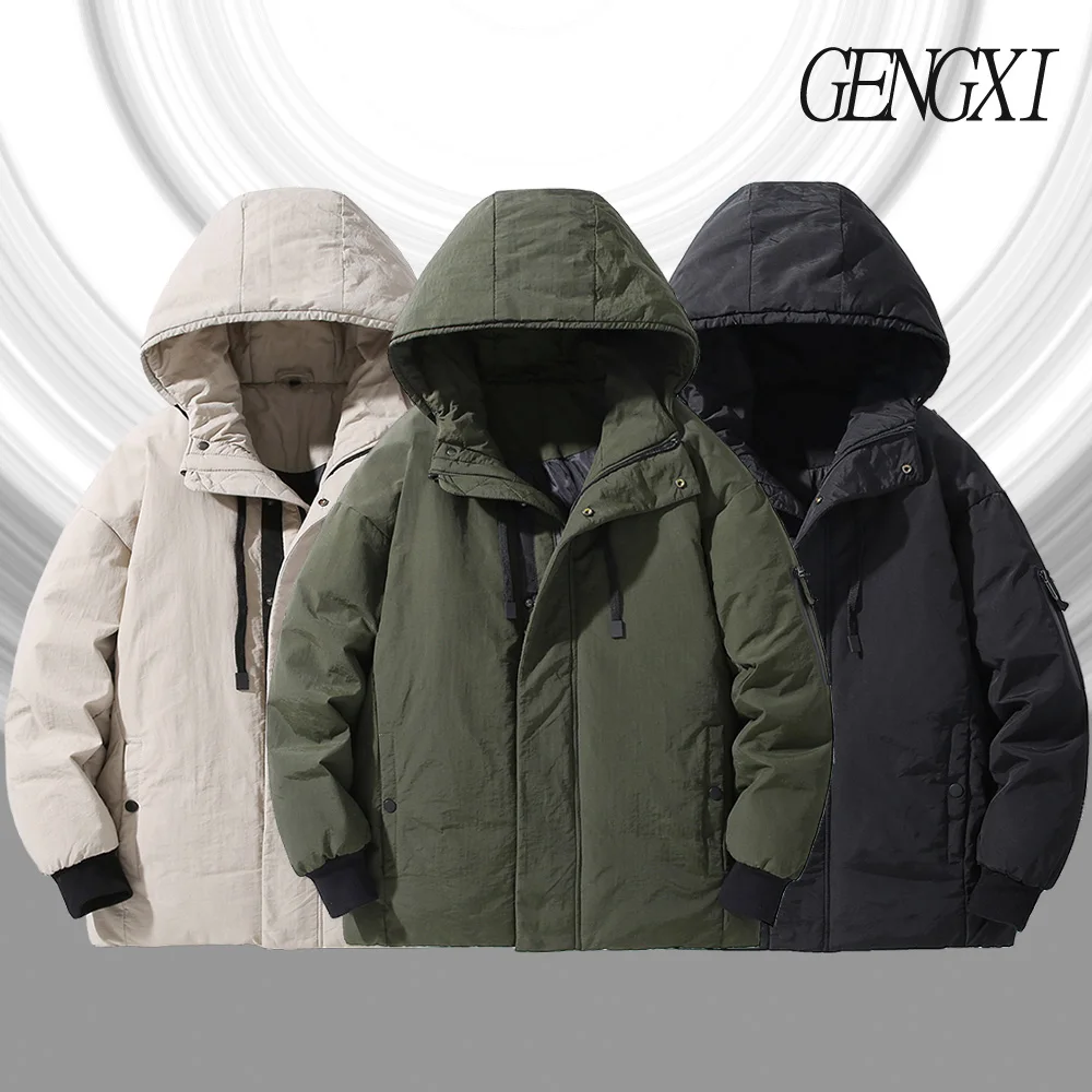 2025 겨울 신상 남성용 화이트 덕다운 작업복 재킷 캐주얼 패션 방한 후드 다운 재킷 상의