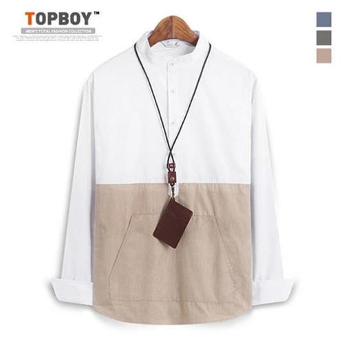 [탑보이]투톤 미들포켓 헨리넥 긴팔셔츠 (MN458)