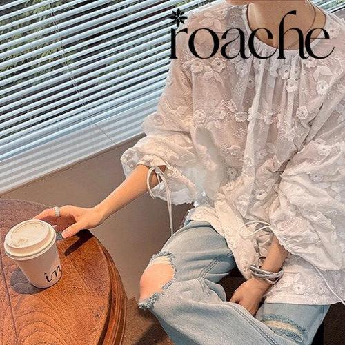 [헬렌]로아체 아플리케 플라워 레이스 블라우스 미니플로블