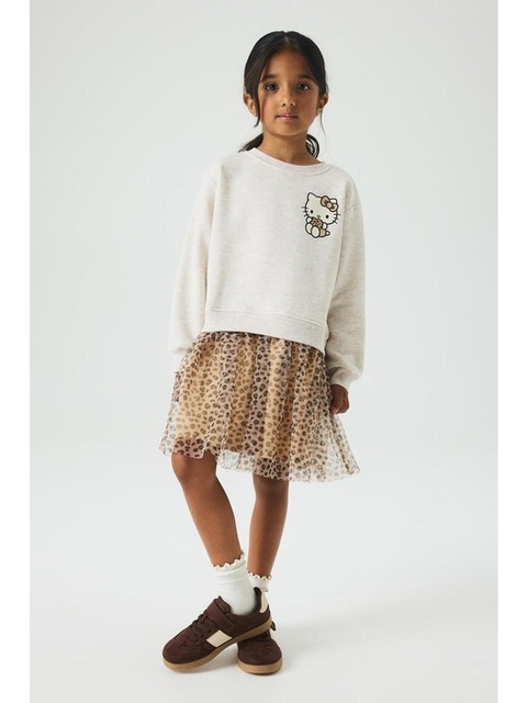 [에이치엔엠] 프린트 스웨트 & 튤 드레스 라이트 그레이 멜란지/헬로키티 1305485006