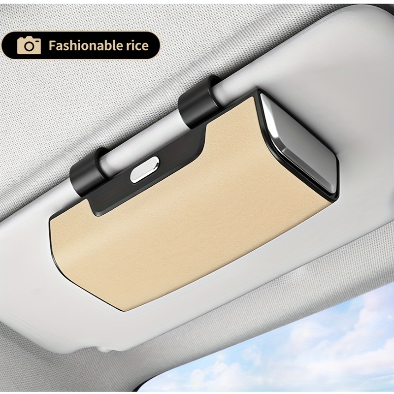 TEMU 선바이저 패션 안경 홀더, PU 가죽 선바이저 패션 안경 케이스, 안경 보호 보관함, AI 안경 보관 가능, 보관 정리함, 세단 SUV 밴 [블랙, 베이지]|선글라스|썬그라스