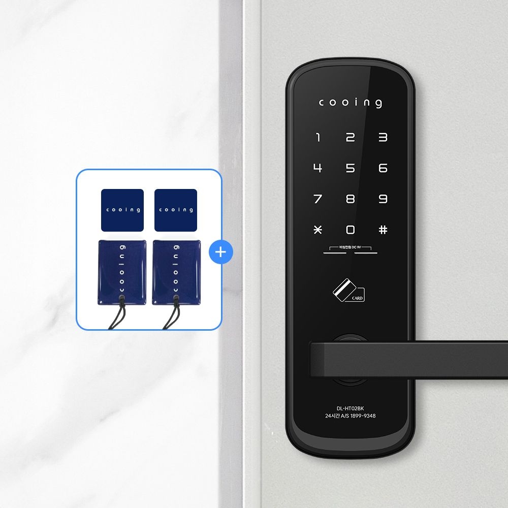 디지털도어락 DL-HT02BK 도어록 무타공 보강판 손잡이 번호키 카드키 현관문