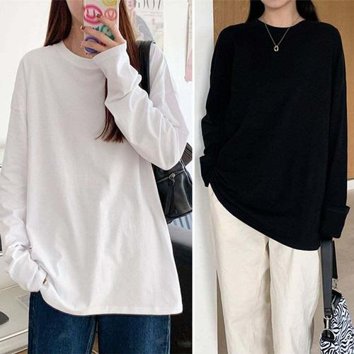 [셀럽하우스]여성 QPCT8400 기본 형광티셔츠 맨투맨티셔츠 라운드넥 무지 긴