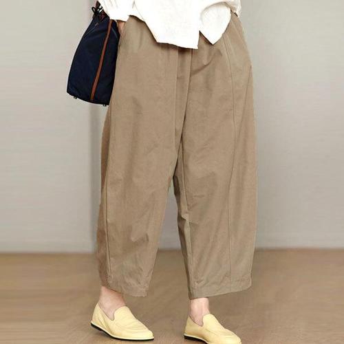 [삐까삐까]바이오워싱 린넨 포켓 밴딩 배기 팬츠 여성 여름 항아리 호박 9부 와이드 바지
