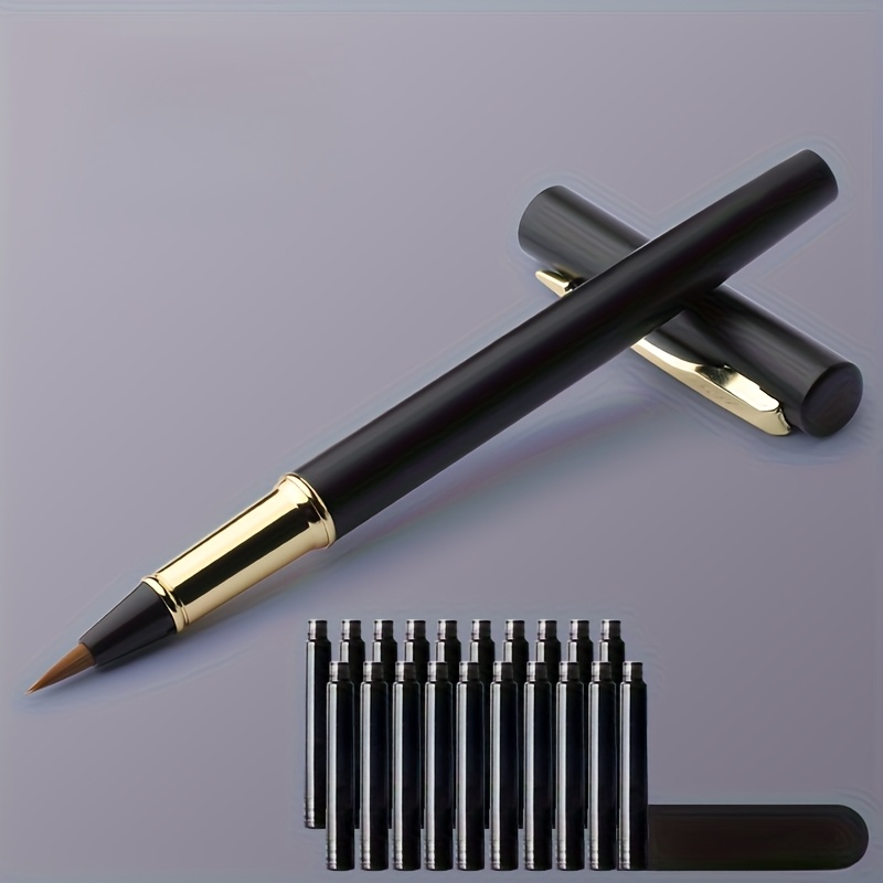 TEMU 전통 중국 서예용 교체 가능한 잉크 & 늑대털 브러시 팁이 있는 펜 - 아시아 그림, 서예, 서명 작성용 리필 가능한 브러시 펜, 중국 잉크 리필과 호환 (플라스틱 본체, 스냅), 아버지의 날 펜, 필기체, 성인용 문구 펜, 아버지의 날 펜