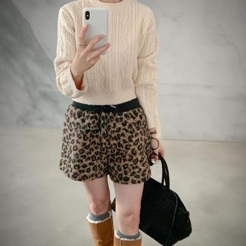 [다잇템]여자 호피 고무줄 양털쇼츠 와이드핏 FW 반바지