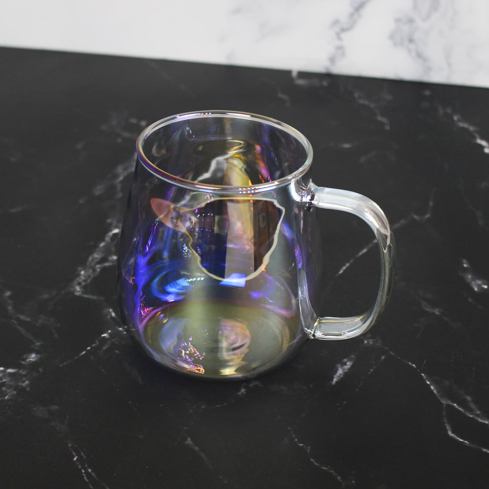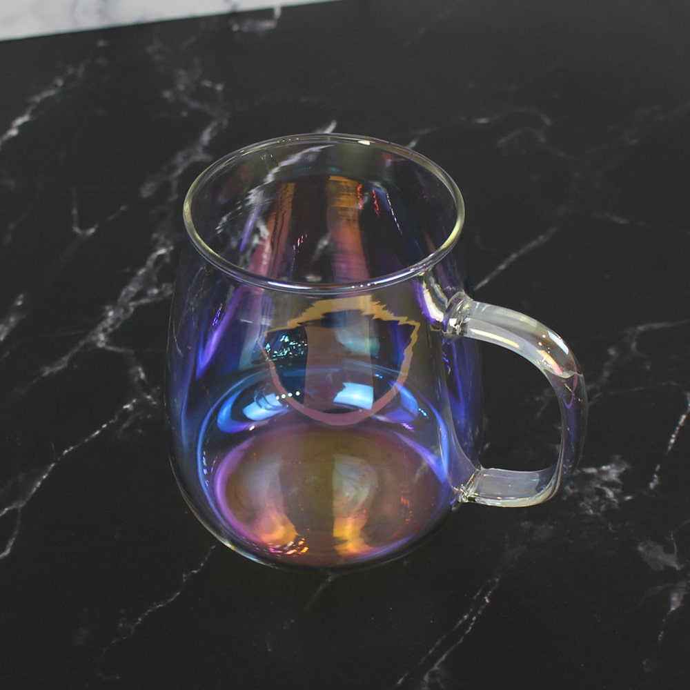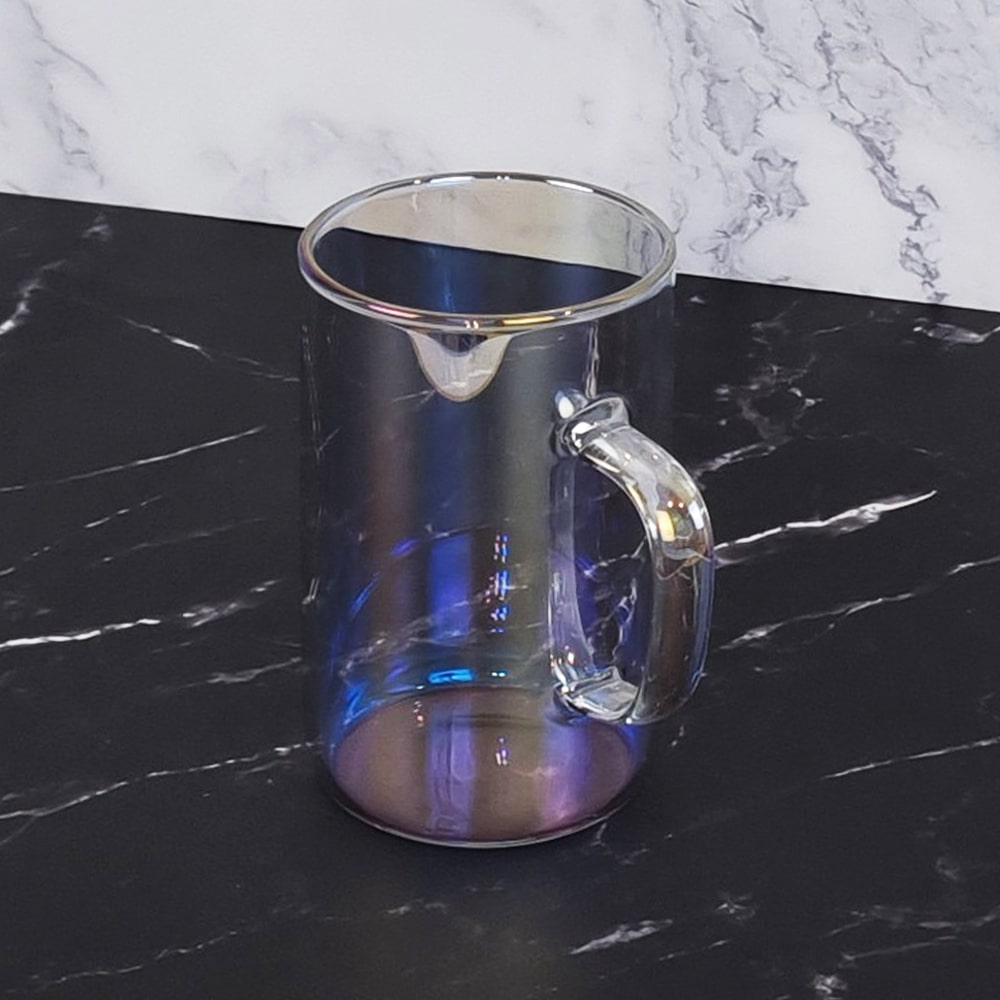 홀로그램 오로라 컬러 손잡이 내열 유리 머그잔 360ml