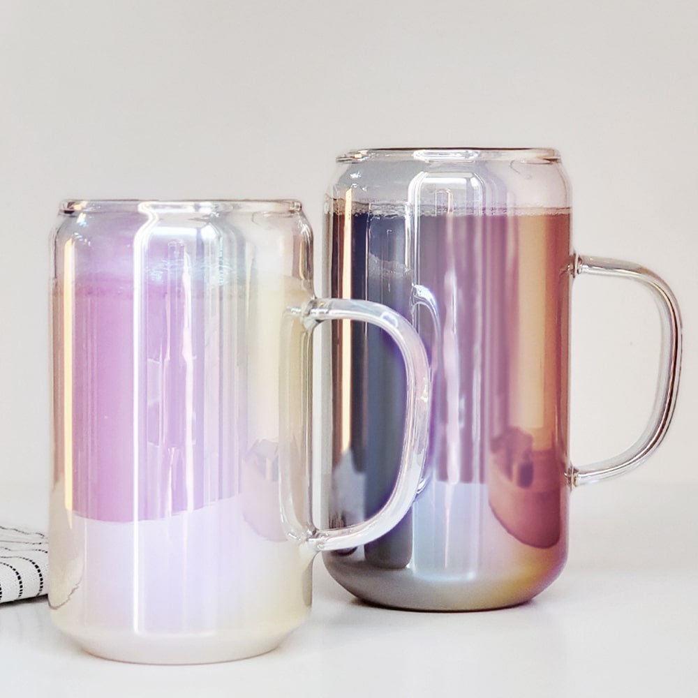 오로라 내열유리 비어캔 머그 홈카페 홀로그램 유리 머그컵 500ml