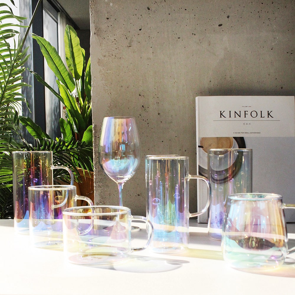 브리티시 레인보우 오로라 홀로그램 하이볼 글라스 물잔 유리컵