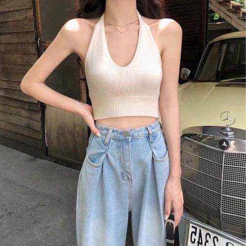 [셀럽하우스]홀터넥 CEXE5671 니트 크롭탑 나시 티셔츠 데일리룩