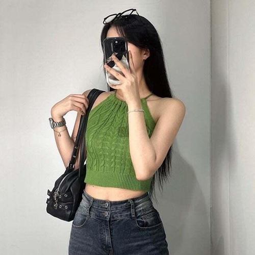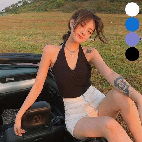 [셀럽하우스]홀터넥 BGQA9586 니트 끈나시 크롭티 민소매 바캉스 코디 4컬러