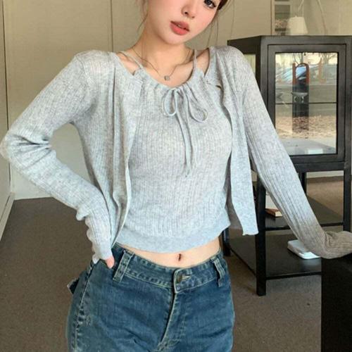 [셀럽하우스]심플 RERK2734 데일리 여성 홀터넥 니트 가디건 세트