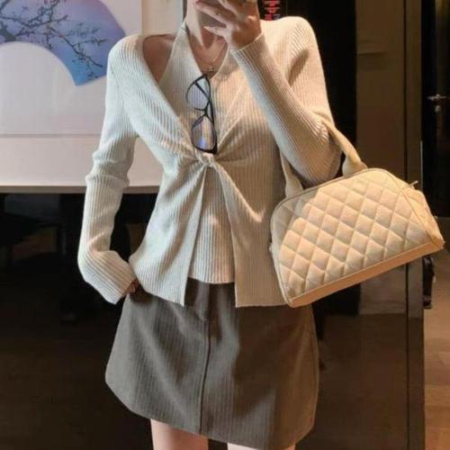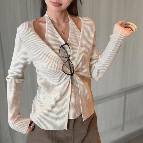 [신상오픈런]여성 홀터넥 레이어드 브이넥 꼬임 골지 니트 가디건