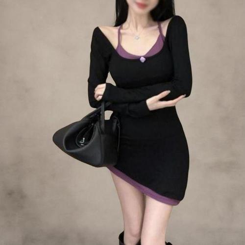 [신상오픈런]여성 홀터넥 슬림핏 언발란스 미니 드레스