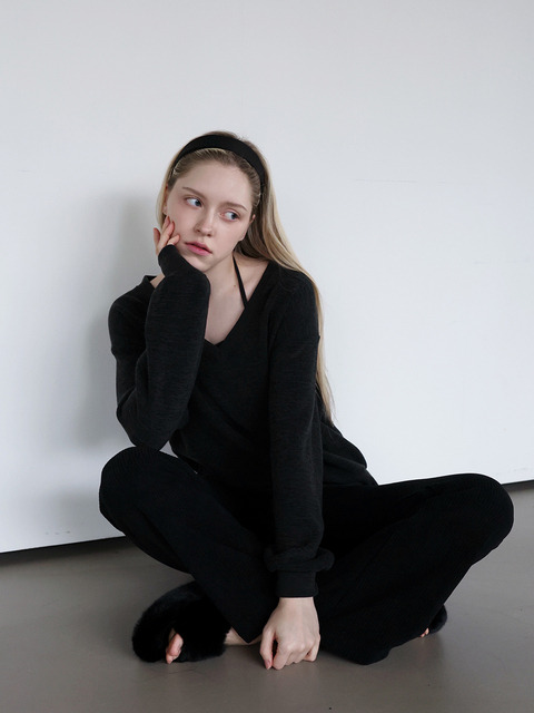 [르반르꼬르] 코지 홀터 브이넥 스웻셔츠-차콜