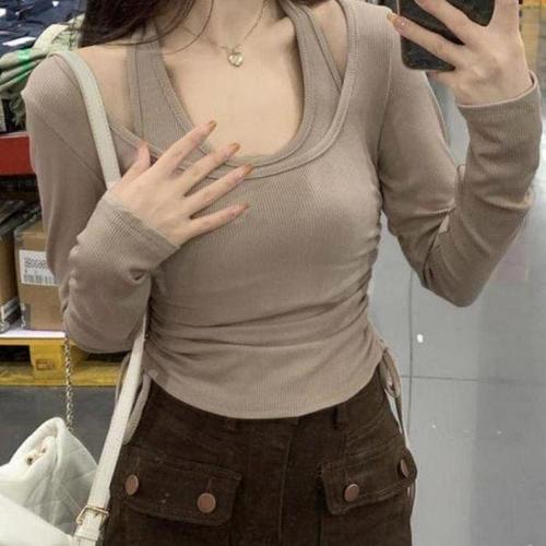 골지 레이어드 티셔츠 여성 데이트룩 홀터 셔츠 WFLPUND