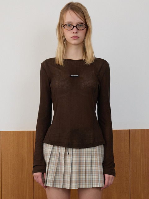 [아밤홈] Label Shirring Long Sleeve Tee Brown