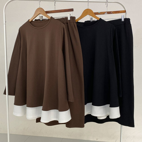나야홍 / 빅사이즈투피스 V716L601 밑단배색롱스커트세트 RA