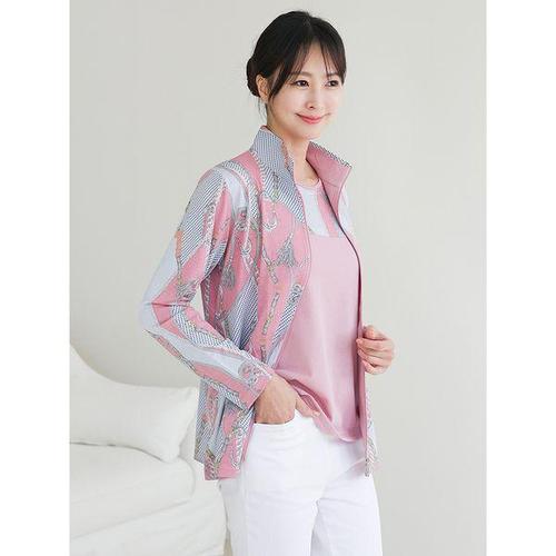 [드리다]봄 가을 플라워 패턴 빅사이즈 메쉬 티셔츠 가디건 앙상블 셋트 50-60대 중년여성 마담옷 선물 ..
