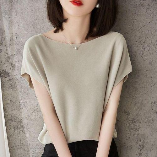 [에이치플러스몰]여름 셔츠 무지 여성 고급 티 여자 니트 반팔 ivory