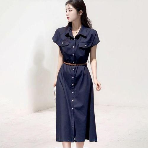 [헬리꽁땡](55~88)카라넥 썸머 셔츠 포켓단추 원피스 캐주얼원피스 니트원피스 엄마옷 임산부봄원피스