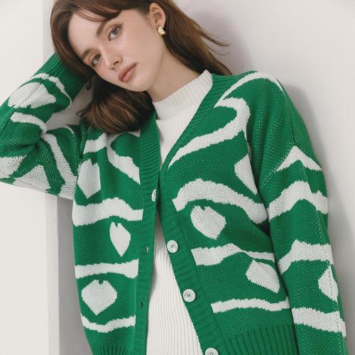 TEMU 가을/겨울 신상 스탠드 칼라 지퍼 가디건 여성 패션 자카드 루즈 스웨터 코트