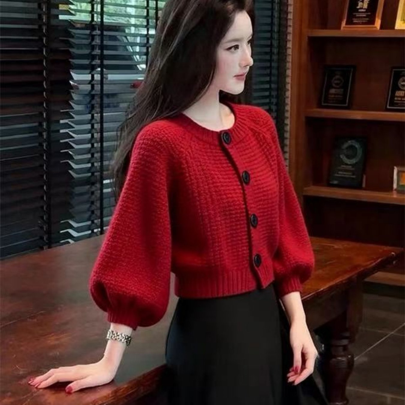 TEMU 새해 셔츠 빨간 랜턴 소매 스웨터 가디건 여성용 루즈핏 게으른 스타일 숏 코트 탑