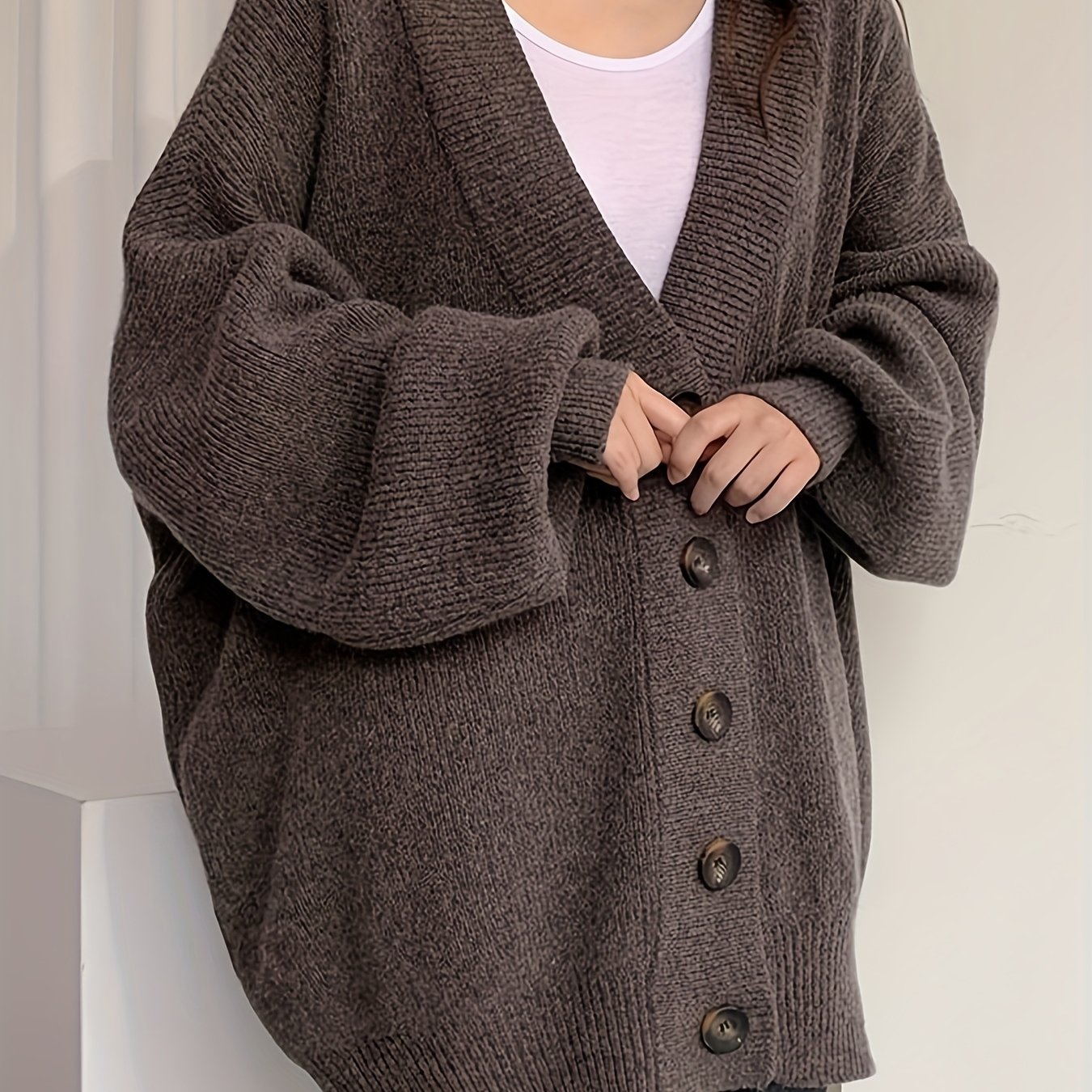 TEMU 루즈핏 긴팔 V넥 스웨터 코트, 스타일리시하고 편안한 여성용 가디건, 패셔너블하고 편안한 스웨터, 우아하고 다재다능한 상의, 데일리 캐주얼 웨어, 데이트, 파티 또는 비즈니스 행사에 적합|가디건