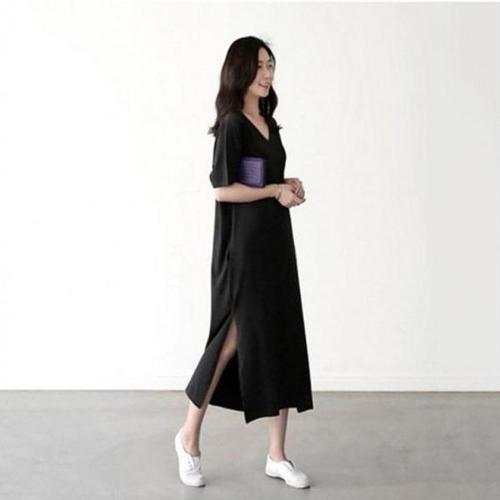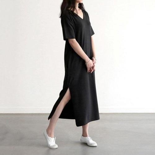 [엄지척]절개 롱원피스 원피스 편안함 브이넥 홈웨어 절개원피_19913228_667501