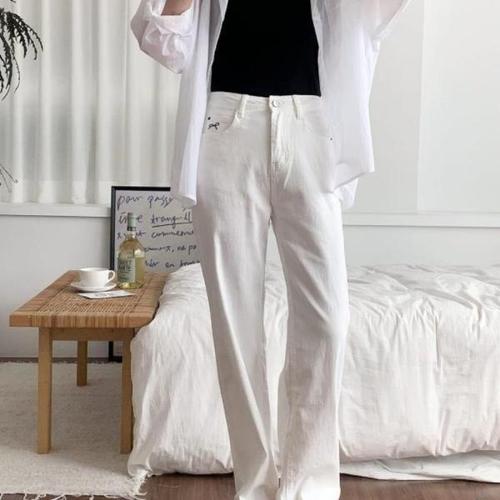 [다잇템]여자 여름 캐주얼 화이트 데님 와이드 팬츠