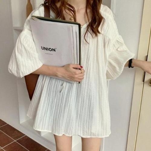[브이와이][VY] 여자 흰색 미니멀리즘 잔주름 벌룬 SS 셔츠스타일 원피스_16257524_588847