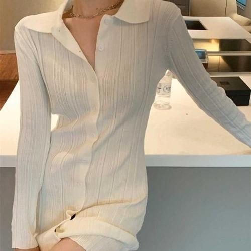 [엄지척]여친룩 화이트 슬림핏 얇은 니트 셔츠 원피스_19913640_667501