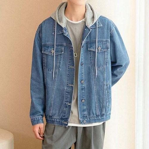 남성 유행 없는 외출 패션 후드 탈부착 데님 청 자켓 남자봄 남자봄아 우터 진청 아