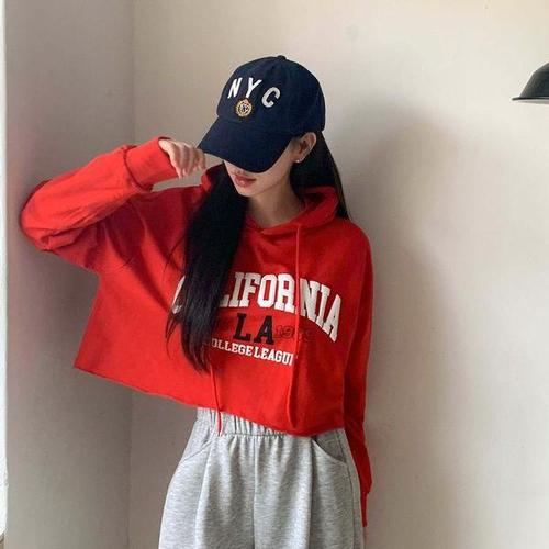[옷자락]여성 레터링 프린트 면 크롭 후드티