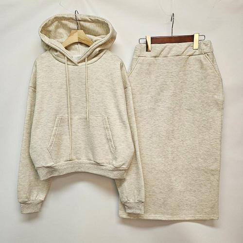 [샵앤][샵앤] 국산 여성 기모 후드 티셔츠 롱스커트 셋업 LL-WSET-5008-오트밀