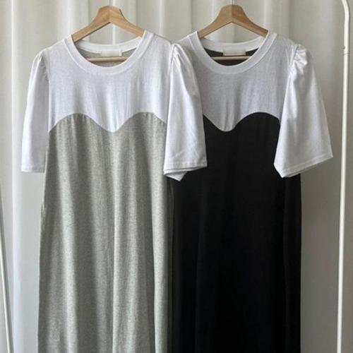 [모노무드]모노무드 은플레이스 원피스 배색 305O326S 퍼프 빅사이즈 하프